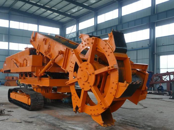 斗輪取料機,是指一種用于大型干散貨堆場的既能堆料又能取料的連續(xù)輸送的高效裝卸機械。由可俯仰和水平擺動的膠帶輸送臂及其前端的斗輪、機架、運行機構(gòu)組成,膠帶可雙向運行,取料時由斗輪取料經(jīng)輸送臂送出,堆料時則由主輸送機運來的貨物經(jīng)由輸送臂投向堆場。